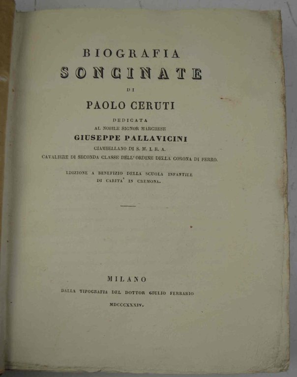 Biografia soncinate... Edizione a benefizio della Scuola Infantile di Carità in Cremona.