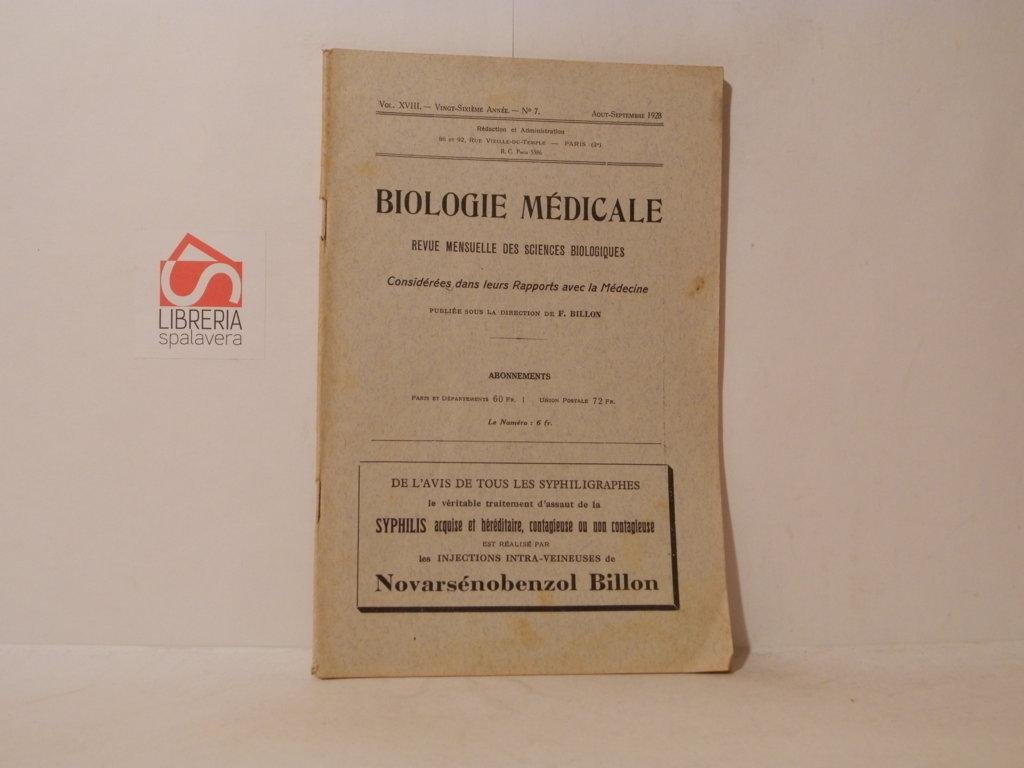 Biologie medicale. Revue mensuelle des sciences biologiques considerees dans leurs rapports avec la medecine. Vol XVIII, n. 7, aout-septembre 1928