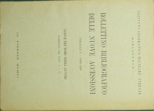 Bollettino bibliografico delle nuove accessioni. Fascicolo V - Anno 1950 | Rare and modern books | Istituto Geografico Militare - Biblioteca