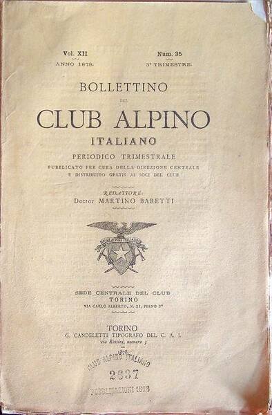 Bollettino del Club Alpino Italiano: Vol. XII - N. 35 - Anno 1878 (III trimestre). | Rare and modern books |