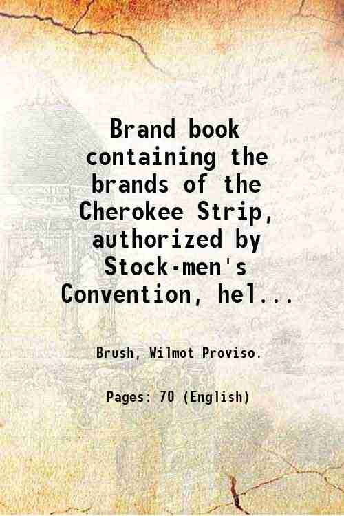 Brand book containing the brands of the Cherokee Strip, authorized by Stock-men's Convention, held at Caldwell, Kans., March 1 and 2, 1882. Also, the brands of the Southwestern Cattle-Growers' Association, organized at Medicine Lodge, Kas., March 17 & 18, 1882. 1882 | Rare and modern books | Brush, Wilmot Proviso.