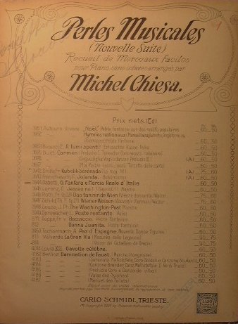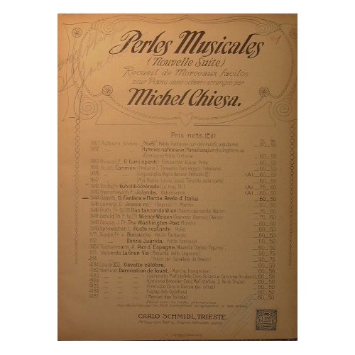In folio piccolo - pp.143 - Tela - Qualche fascicolo con piatti illustrati - Complessivamente trattasi di 16 brani editi da Schmidl,Carisch e Janichen,Ricordi,Schott,Giudici e Strada,Gori,Sonzogno e Choudens. Un fascicolo è datato al 1910