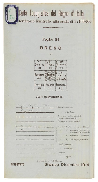 BRENO. Foglio 34 della Carta Topografica del Regno d'Italia e del territorio limitrofo, alla scala di 1:100.000.