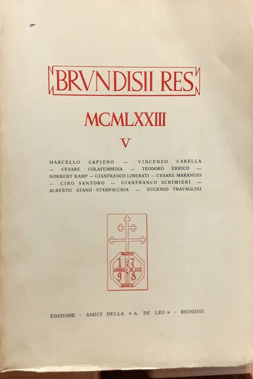 Brindisi - Galatina (LE), Edizione Amici della Biblioteca "A. , 1973
