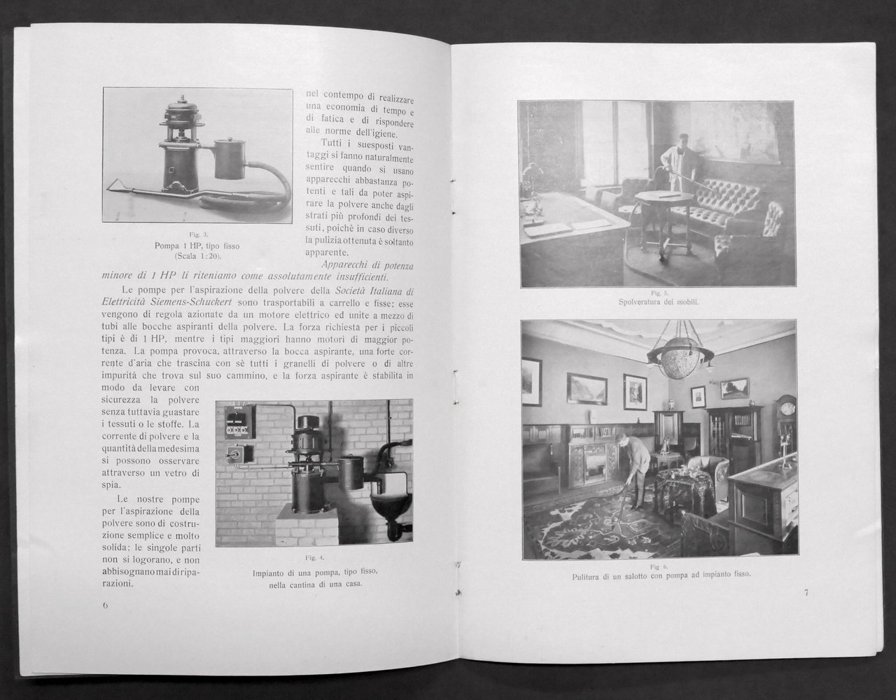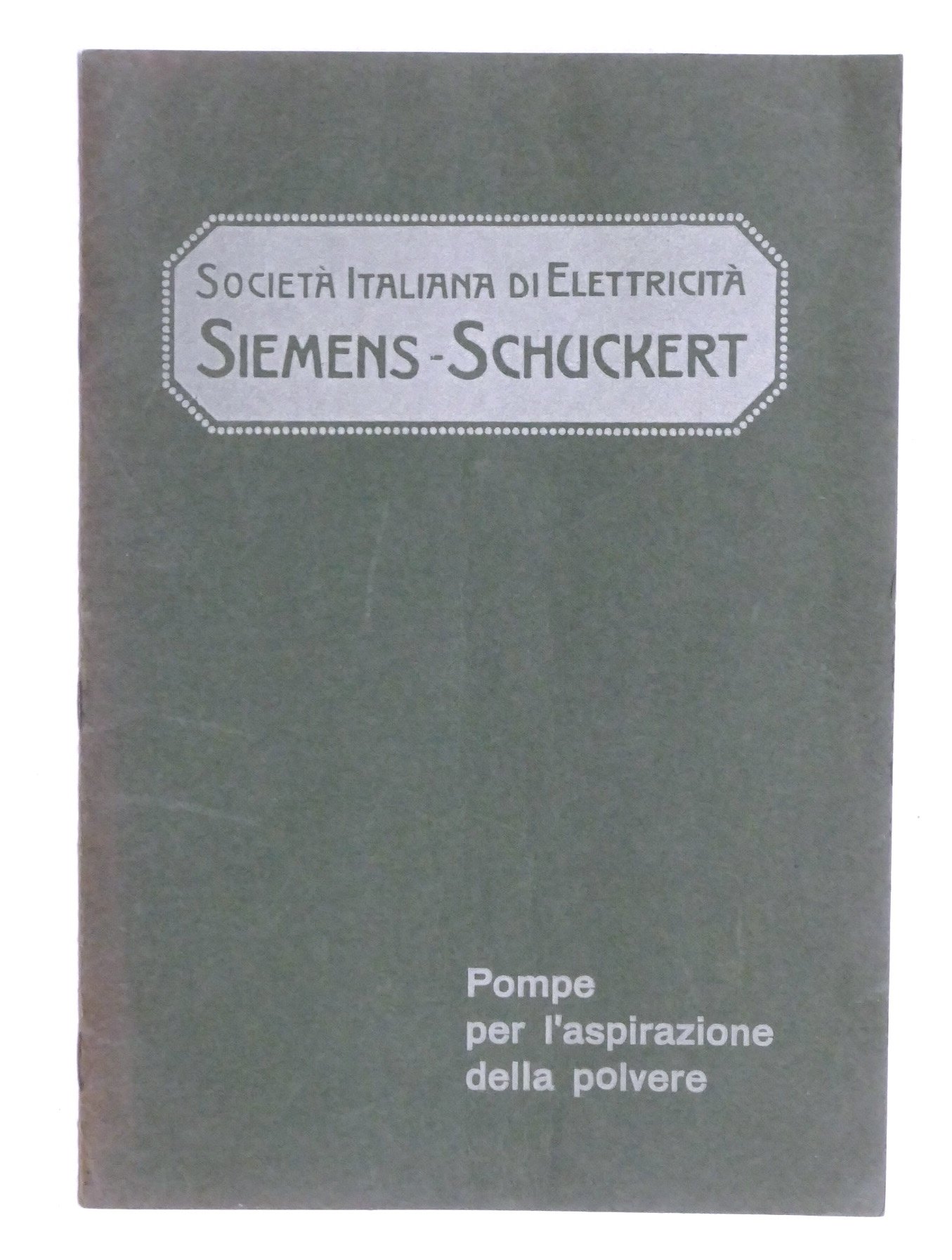 Brochure Società Italiana di Elettricità Siemens - Schuckert - Pompe per Aspirazione della Polvere - anni '30 Pag. 16 con illustrazioni. Copertina morbida - Testo in italiano. Condizioni molto buone.