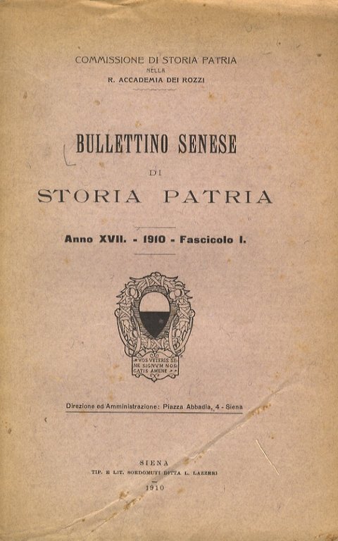 BULLETTINO Senese di Storia Patria. Commissione di Storia Patria nella R. Accademia dei Rozzi. Anno XVII. 1910. Fascicolo I [- II - III].