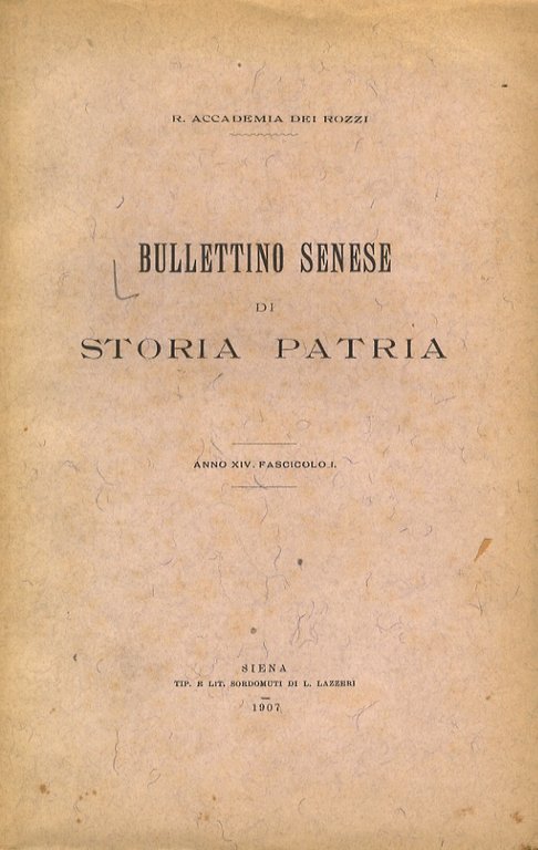 BULLETTINO Senese di Storia Patria. R. Accademia dei Rozzi. Anno XIV. 1907. Fascicolo I.