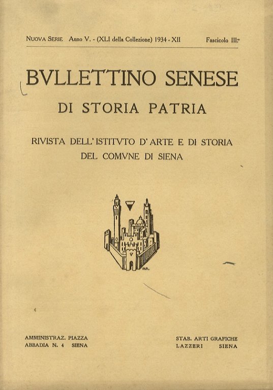 BULLETTINO Senese di Storia Patria. Rivista dell'Istituto d'Arte e di Storia del Comune di Siena. Nuova serie. Anno V. (XLI della collezione) 1934. Fascicolo III.