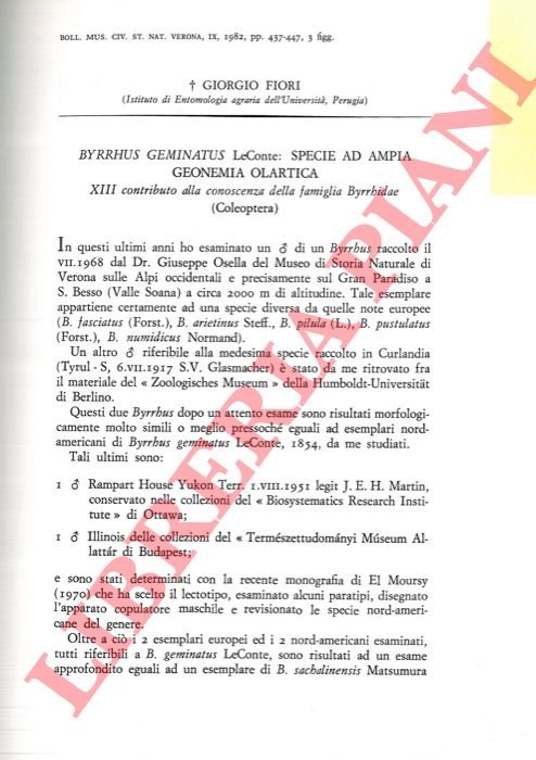 Byrrhus geminatus LeConte: specie ad ampia geonemia olartica (Coleoptera) .