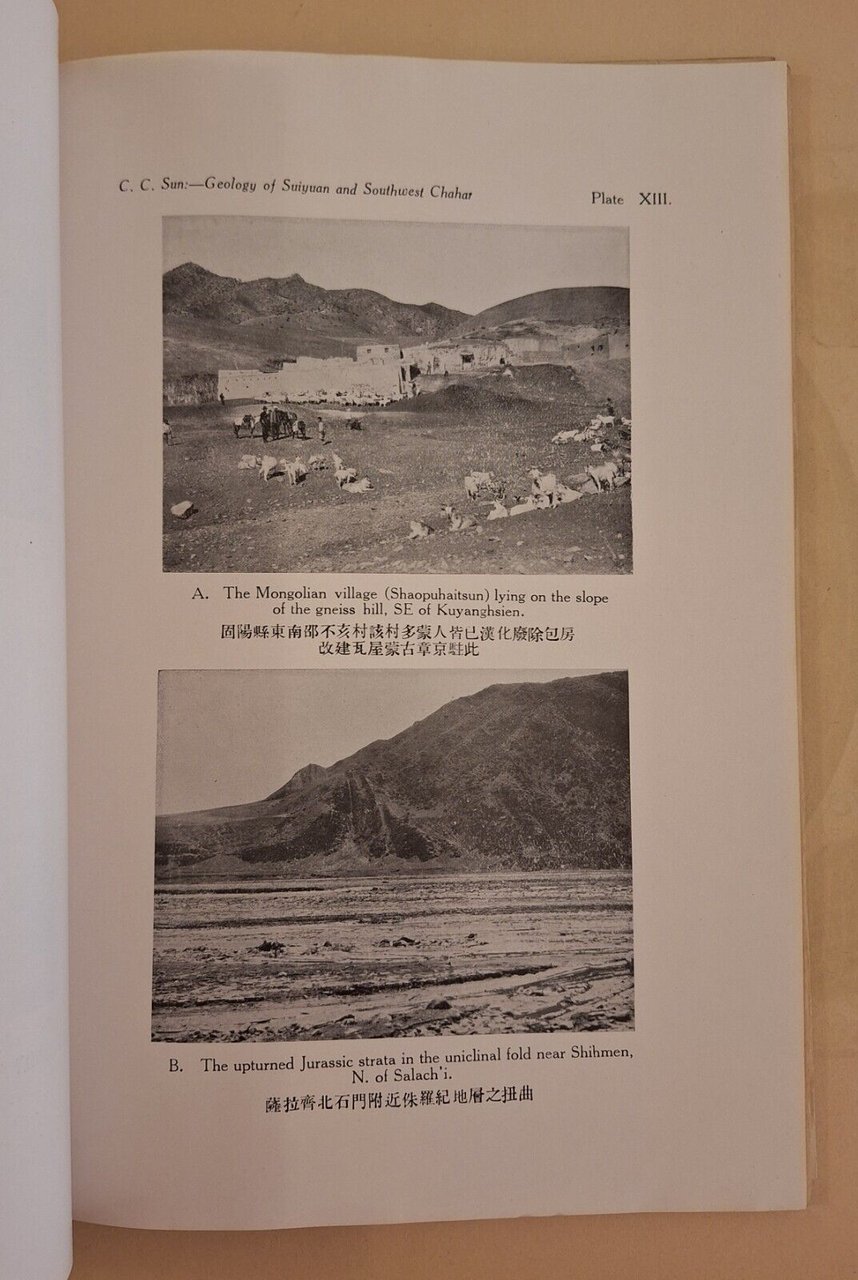 C.C. SUN GEOLOGICAL MEMOIRS GEOLOGY OF SUIYUAN AND SOUTHWEST CHAHAR PEIPING 1934