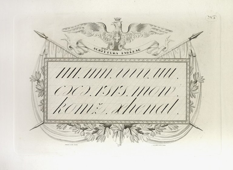 Calligrafia che comprende le norme principali per eseguire con facilita qualunque specie di carattere.