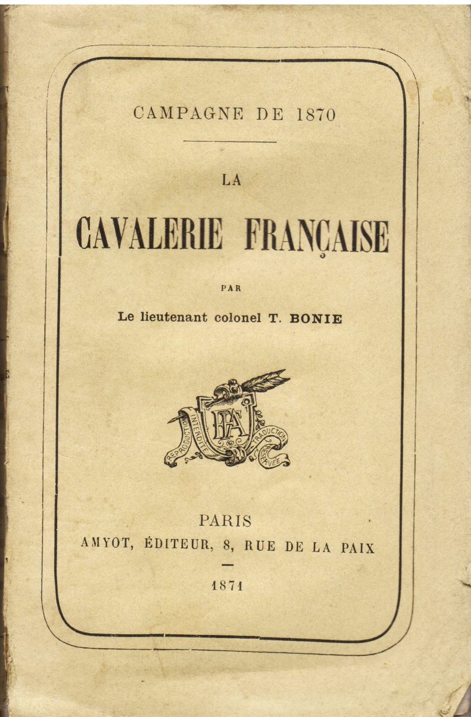 Campagne de 1870 La cavalerie française par le liuetenant colonel T. Bonie