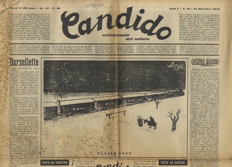 CANDIDO. Settimanale del sabato. Direttori: Giovanni Mosca e Giovannino Guareschi. Anno V. 1949. N. 52. 23 dicembre 1949.