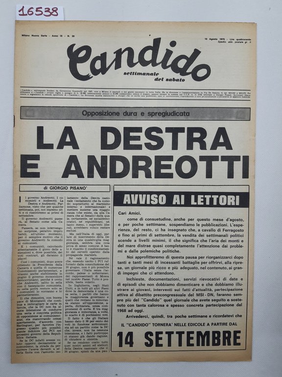 Candido settimanale del sabato numero 30 10 agosto 1976