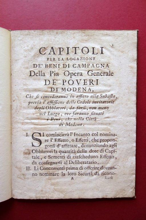 Capitoli per la Locazione di Campagna Pia Opera de'Poveri di Modena 1765
