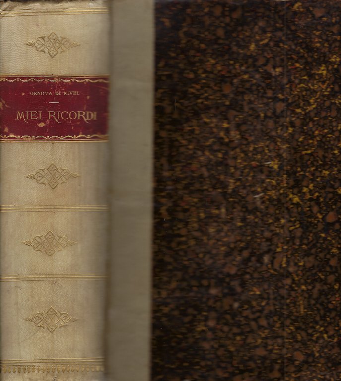 Rilegatura d'amatore in mezza pergamena, titoli in oro su tassello rosso e fregi in oro al dorso liscio, piatti rivestiti in carta marmorizzata.