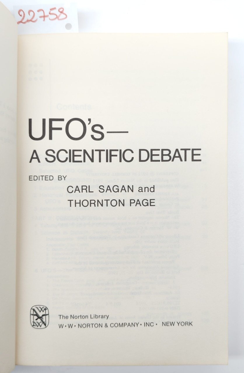 Carl Sagan e Thornton Page Ufos a scientific debate Norton L. 1974 1° edizione