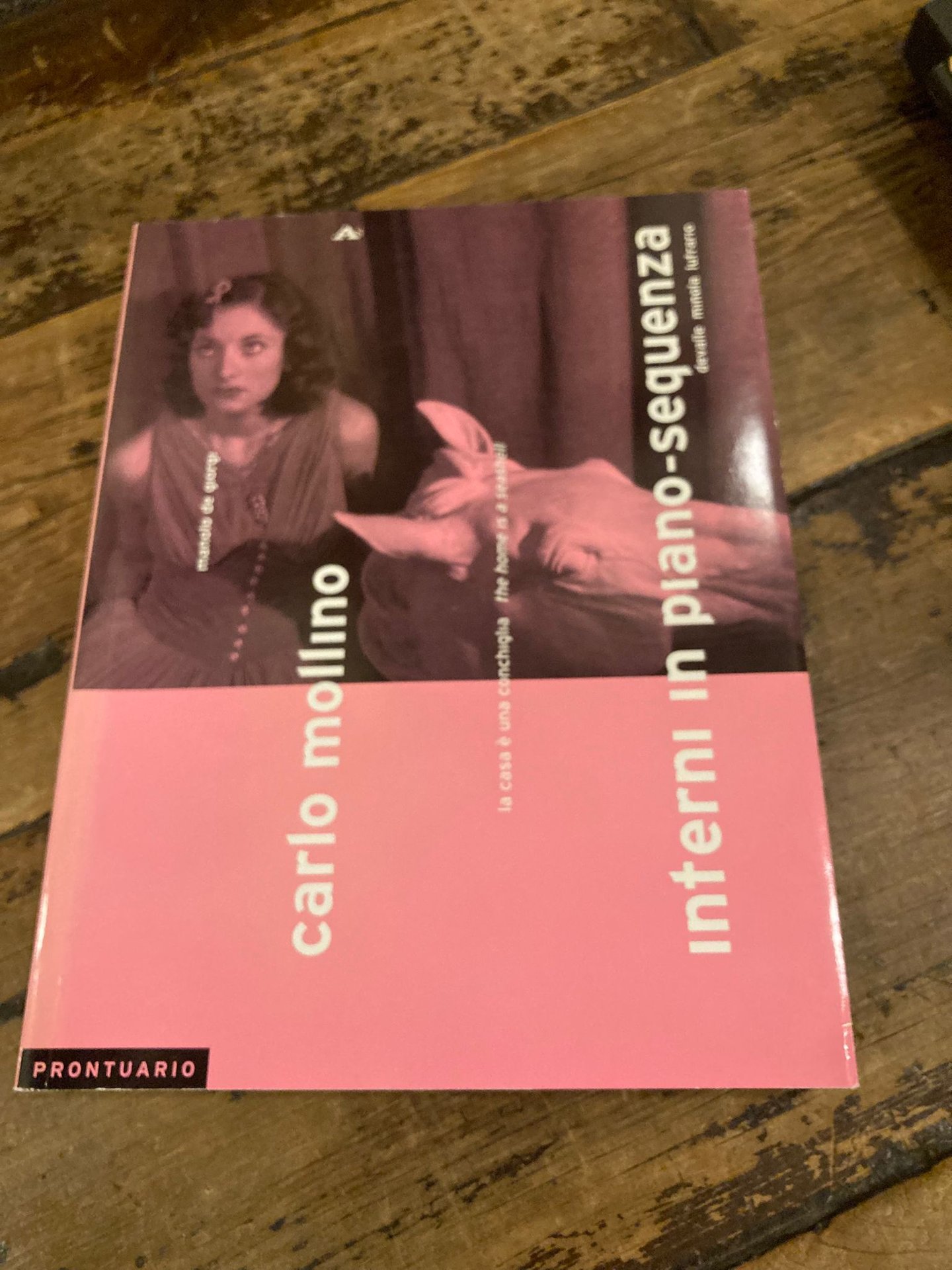 In-8° (23x17 cm), pp. 166 (2), brossura editoriale figurata a colori, risvolti paratestuali. Numerosissime illustrazioni a colori e b/n nel testo e fuori di esso, anche marginali. Collana Prontuario. Più che buon esemplare. Edizione originale di questo studio ragionato sull' architettura d' interni in due case (Devalle, Minola) e un dancing (Lutrario) torinesi. Iconografia dettagliata comprensiva delle riproduzioni dei progetti originali, dei complementi d'arredo nonché di Mollino in posa e al lavoro, delle immancabili modelle en déshabillé etc. Testo in italiano e in inglese.
