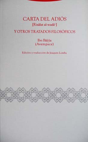 Carta del Adiós y otros tratados filosóficos. [Tratado sobre el Intelecto Agente. Tratado de la unión del Intelecto con el Hombre. Sobre el fin del Hombre. Sobre la felicidad política y la felicidad de la otra vida]. Edición y traducción de Joaquín Lomba.