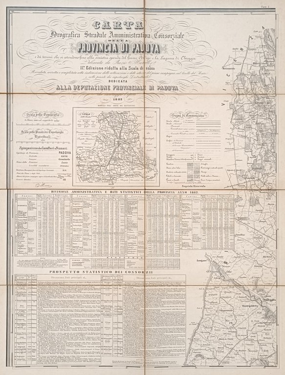 CARTA IDROGRAFICA STRADALE AMMINISTRATIVA CONSORZIALE DELLA PROVINCIA DI PADOVA E DEI TERRENI CHE SI ESTENDONO FINO ALLA SINISTRA SPONDA DEL FIUME ADIGE E LA LAGUNA DI CHIOGGIA
