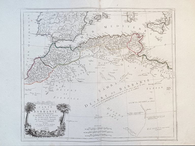 CARTE DE LA BARBARIE, CONTENANT LES ROYAUMES DE MAROC, DE FEZ, D'ALGER, DE TUNIS ET DE TRIPOLI AVEC LES DESERTS LIMITROPHES DE L'INTERIEUR DE L'AFRIQUE