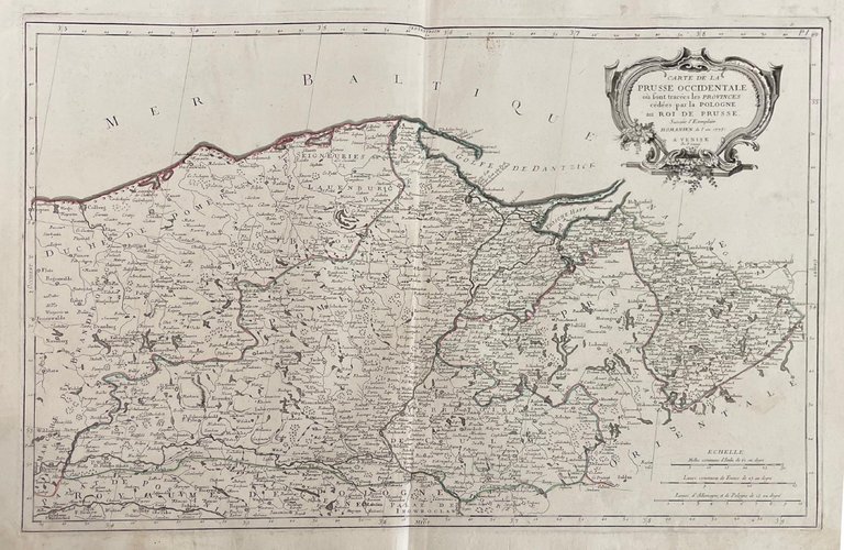 CARTE DE LA PRUSSE OCCIDENTALE OU SONT TRACEES LES PROVINCES CEDEES PAR LA POLOGNE AU ROI DE PRUSSE