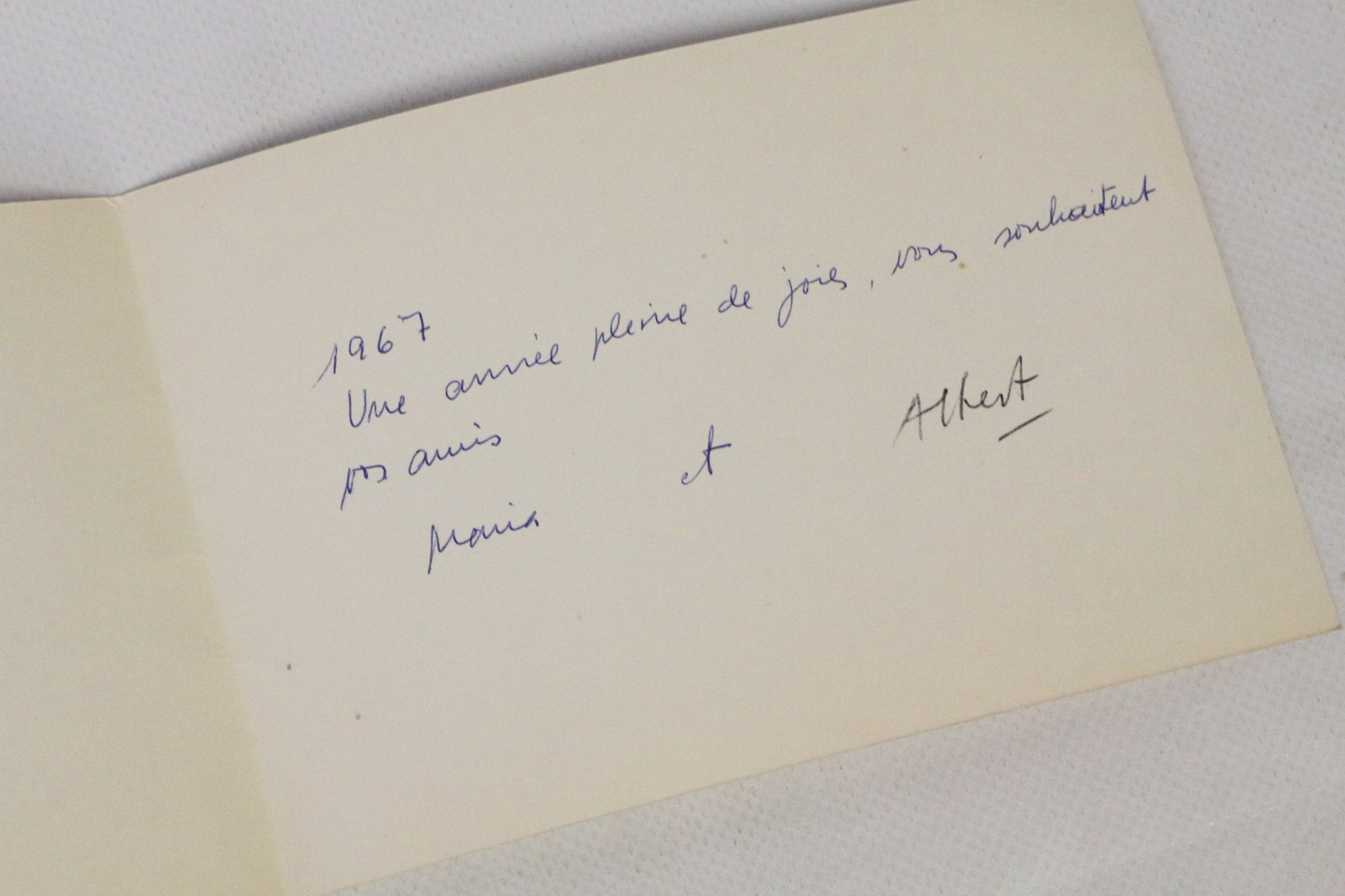 Carte de voeux adressée à la famille Raillard pour l'année 1967 signée par Albert Rafols-Casamada et sa femme Maria