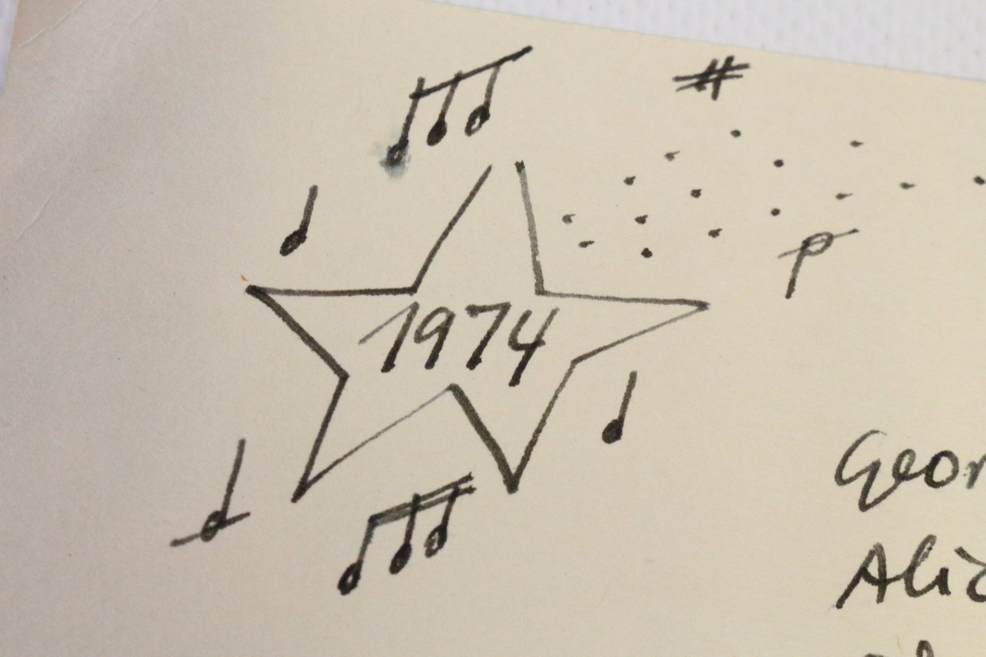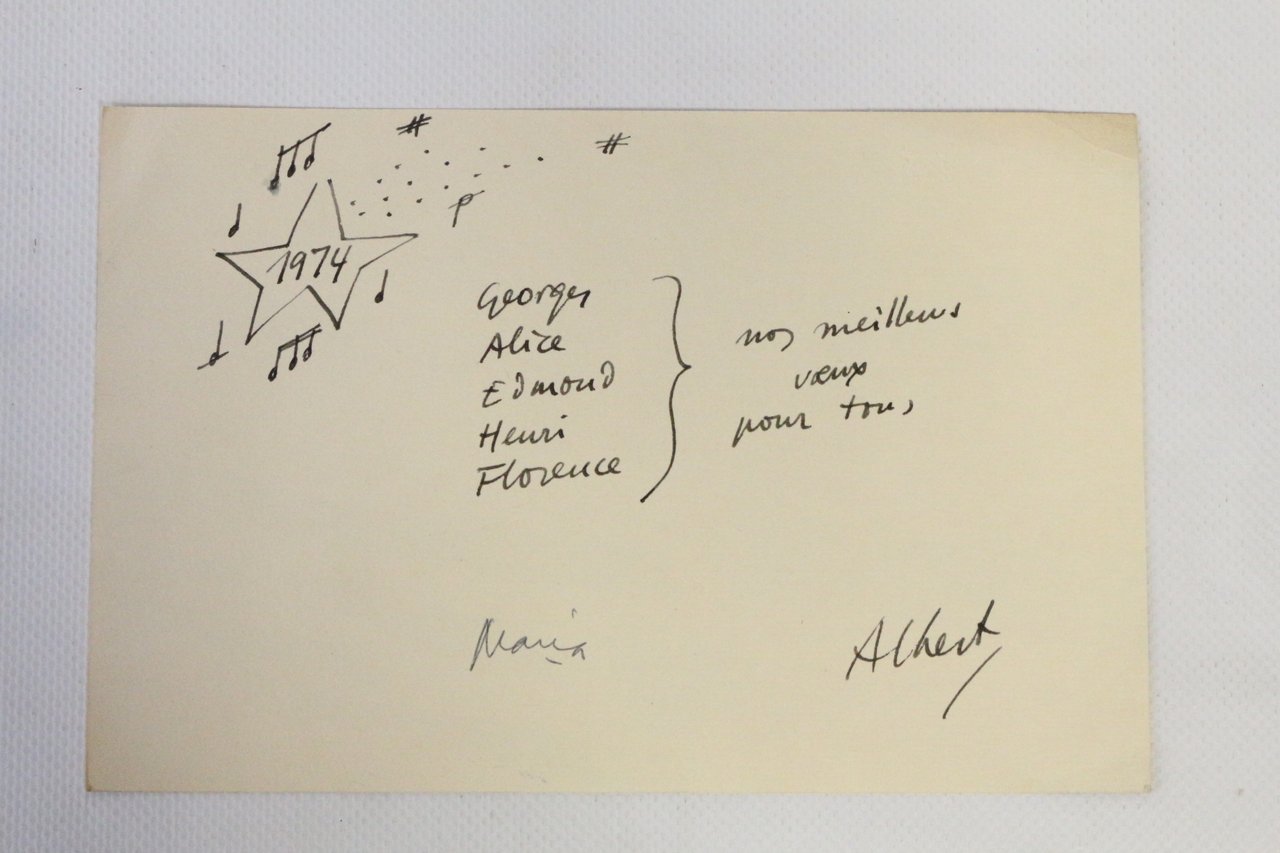 Carte de voeux adressée à la famille Raillard pour l'année 1974 signée par Albert Rafols-Casamada et sa femme Maria