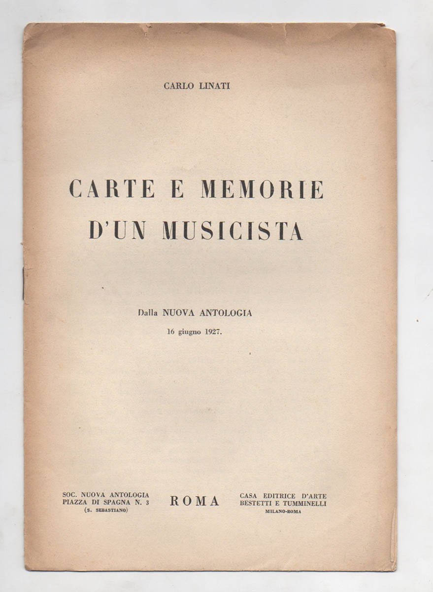 LIBROPrima edizione.Ottimo esemplare.Estratto dalla «Nuova Antologia» del 16 giugno 1927. Ricordo di Marco Enrico Bossi, compositore e organista morto nel 1925, il cui epitaffio fu scritto da Margherita Sarfatti e che fu, tra gli altri, amico di Pascoli. Molto raro: 1 sola copia censita nel catalogo SBN.