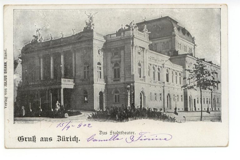 Cartolina Gruss aus Zurich Das Stadttheater 1902 viaggiata Svizzera