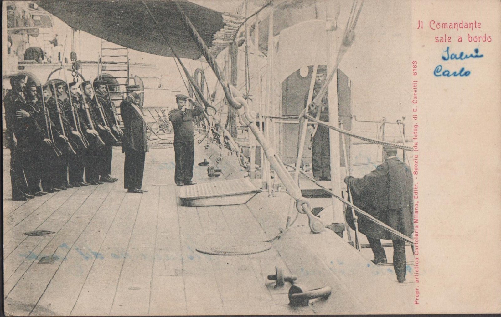 Cartolina Serie Vita di Bordo Il comandante sale a bordo nvg 1901