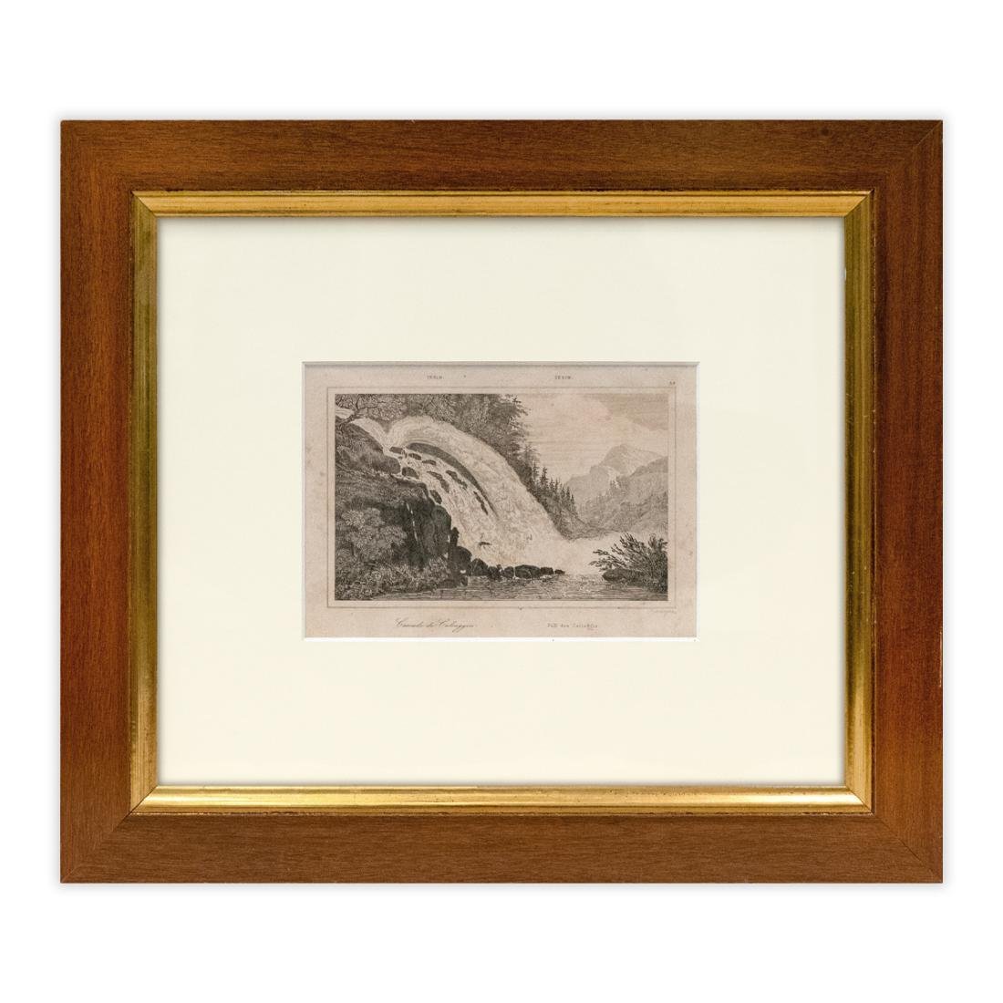 Cascata di Calcaggia, Tessin Dimensioni con cornice: 38x33 cmDimensioni netto incisione: 17x11,5cm Cornice in noce. Ottime condizioni generali come da immagini.