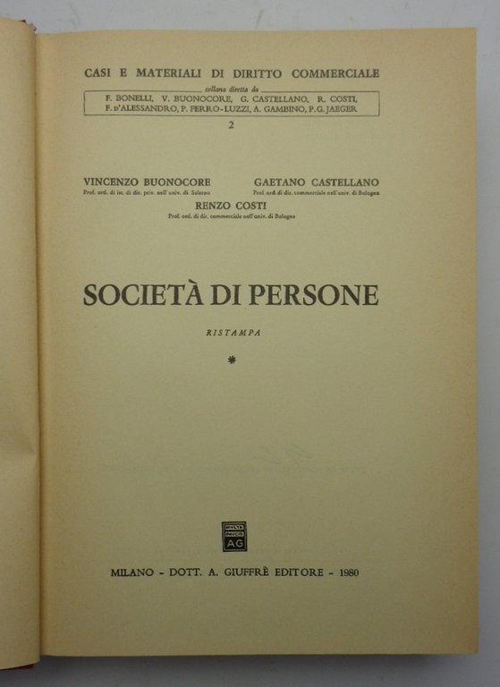 Casi e materiali di diritto commerciale. SOCIETÀ DI PERSONE. Voll 1 e 2.