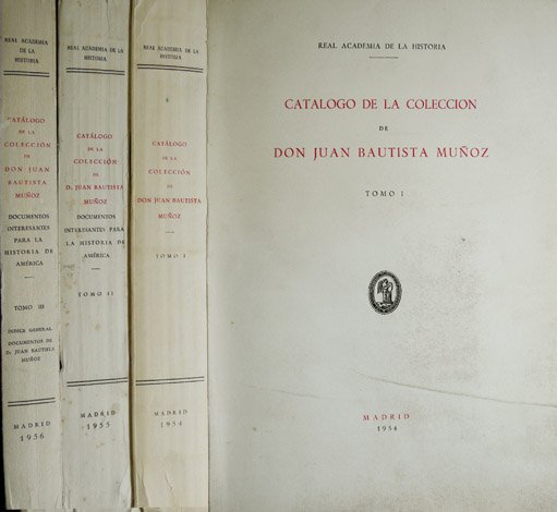 Madrid, Real Academia de la Historia, 1954 - 1956. Tres volúmenes en 4to. mayor; LXIX pp., 505 pp., 1 h. + X pp., 496 pp., 1 h. + CLXIV pp., 233 pp., 1 h. Cubiertas originales.