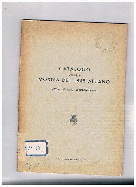 Catalogo della mostra del 1848 Apuano. Massa 31 ott. 21 nov. 1948.