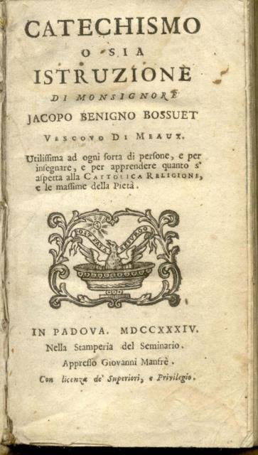 CATECHISMO ossia ISTRUZIONE. Utilissima afd ogni sorta di persone, e per insegnare, e per apprendere quanto s'aspetta alla cattolica religione, e le massime della Pietà.