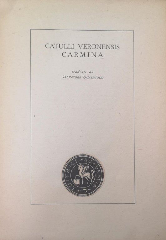 CATULLI VERONENSIS CARMINA. - Tradotti da Salvatore Quasimodo.