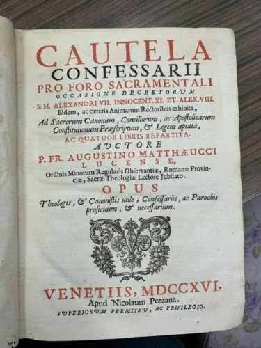 Venetiis. Pezzana 1716, 8°, pp. 14nn+516+36nn. Capilettere e finalini incisi. Bruniture anche a piena pagina ad alcune parti del testo. Segni del tempo. Leg. coeva in piena pergamena coeva, tit. calligrafati al dorso. Raro.