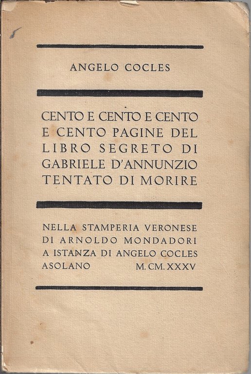 Cento e cento e cento e cento pagine del libro segreto di Gabriele D'Annunzio tentato di morire