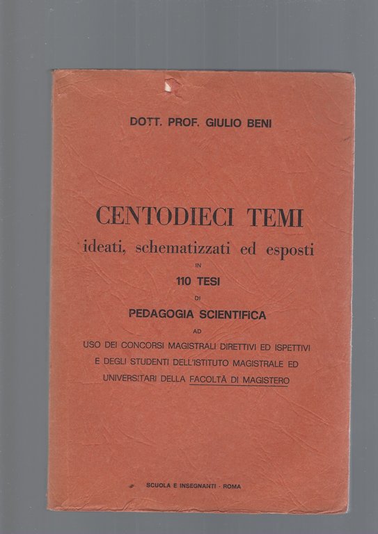 CENTODIECI TEMI IDEATI, SCHEMATIZZATI ED ESPOSTI IN 110 TESI DI PEDAGOGIA SCIENTIFICA