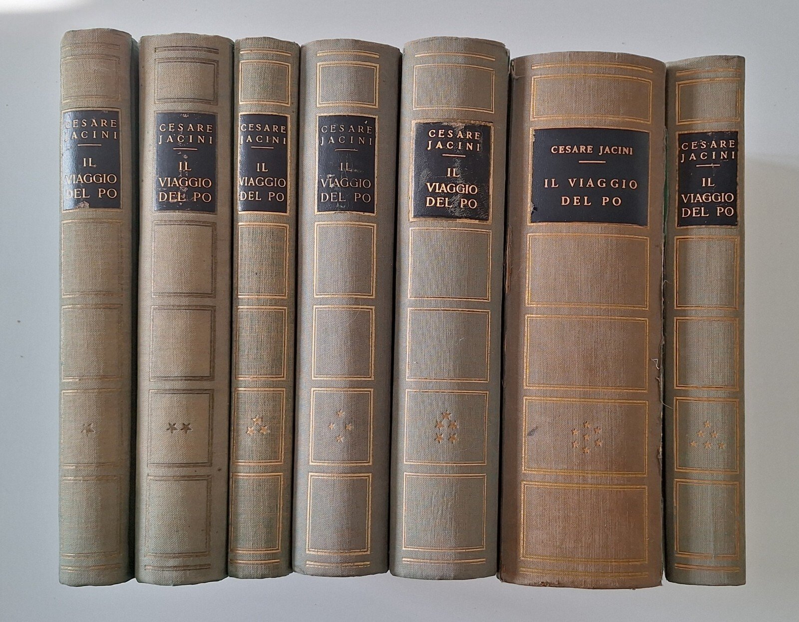 CESARE JACINI IL VIAGGIO DEL PO HOEPLI 7 VOLUMIIn 4°, legatura editoriale, copertina telata con titolo in oro al piatto, ill. in b/n e a colori.Lievi segni alle copertine. Pagine fresche e pulite.TUTTI I NOSTRI LIBRI SONO VISIBILI PREVIO CONTATTO MAIL, TELEFONO O WHATSAPP NELLA NUOVA SEDE DI MILANO: LIBRERIA COSMOPOLIS, VIA JOMMELLI 22, MILANO.3313109672