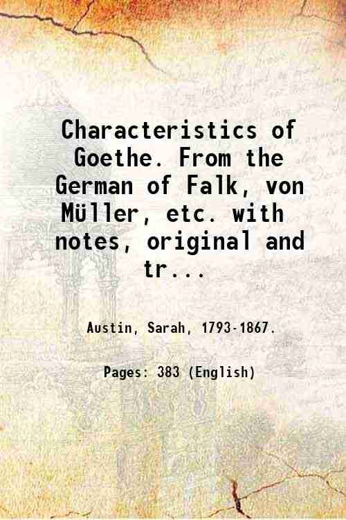 Characteristics of Goethe. From the German of Falk, von M¸ller, etc. with notes, original and translated, illustrative of German literature. Volume 1 1833