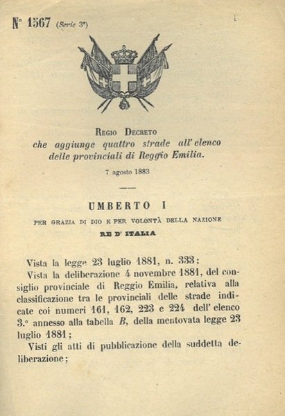 che aggiunge quattro strade all'elenco delle provinciali di Reggio Emilia.