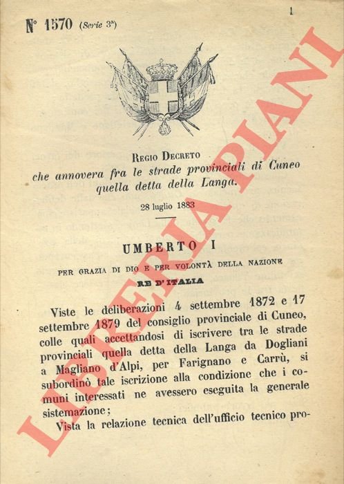 che annovera fra le strade provinciali di Cuneo quella detta della Langa.