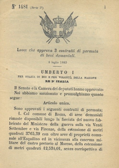 Roma, 1883, 8 luglio, firma Umberto I, Magliani con stemma reale xil. pp. 2