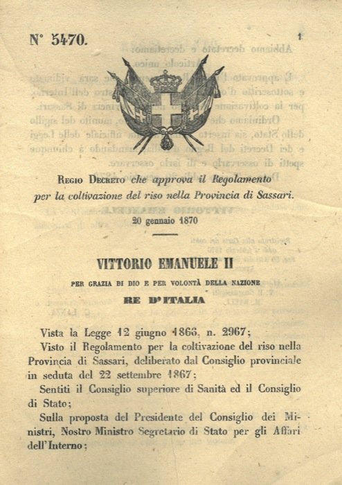 che approva il Regolamento per la coltivazione del riso nella Provincia di Sassari.