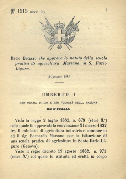 che approva lo statuto della scuola pratica di agricoltura Marsano in S. Ilario Ligure.