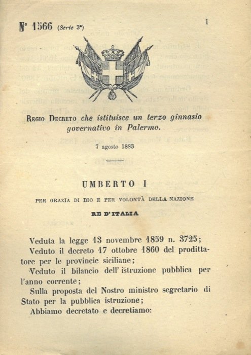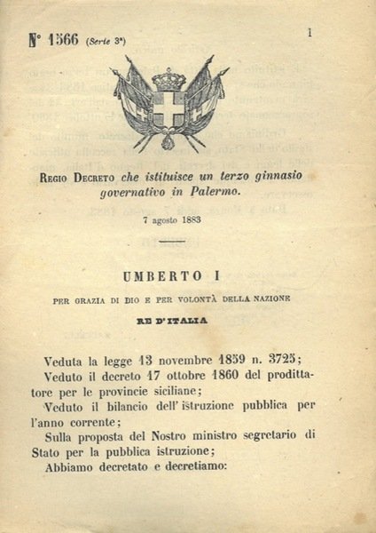 Monza, 1883, 7 agosto, firma Umberto I, Baccelli con stemma reale xil. pp. 2