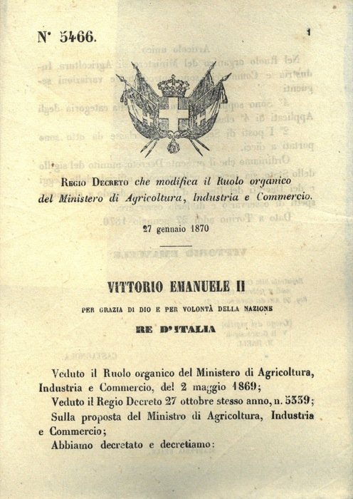 che modifica il Ruolo organico del Ministero di Ageicoltura, Industria e Commercio.