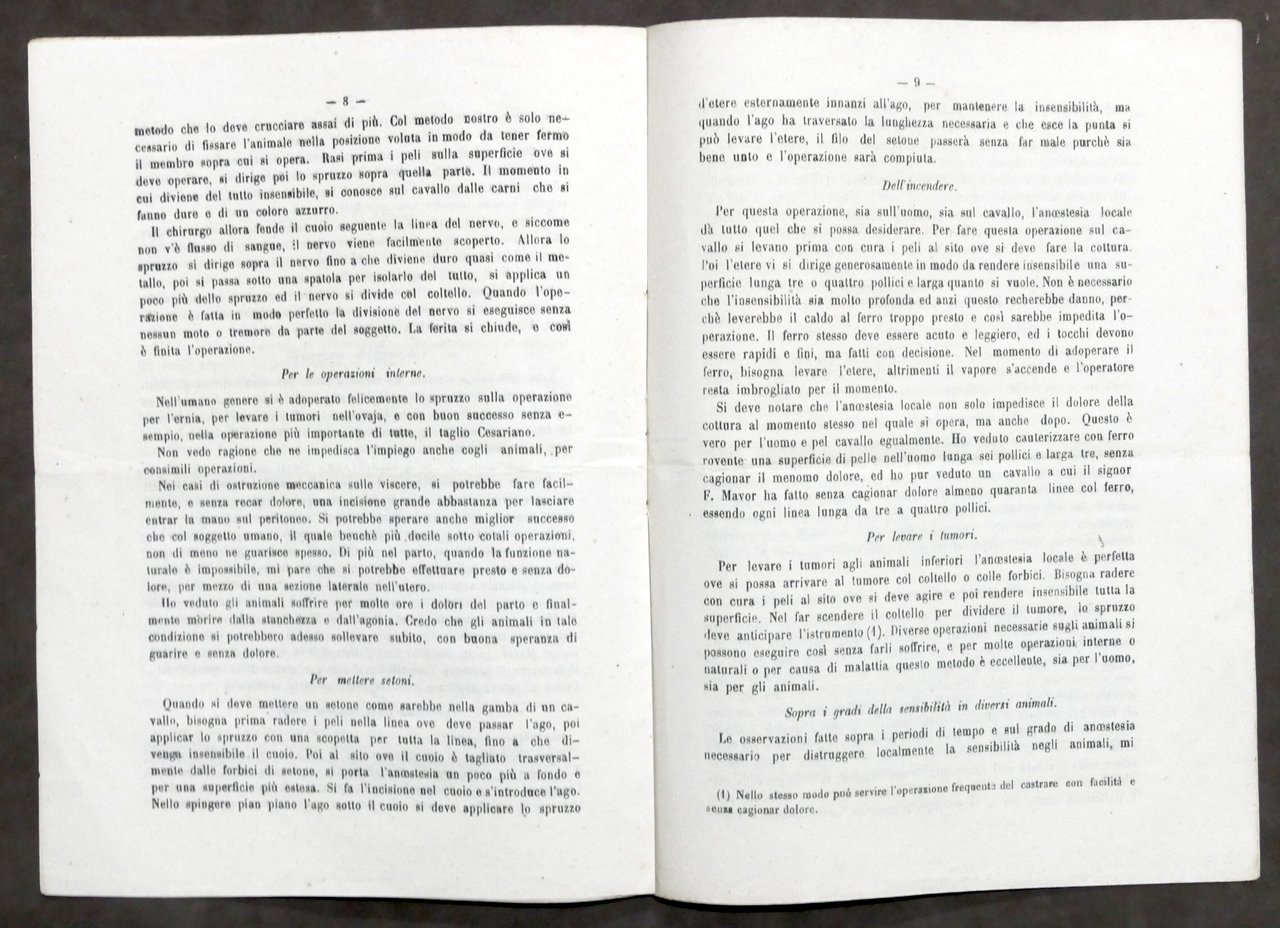 Medicina - Chirurgia Richardson - Insensibilità locale collo spruzzo dell'etere nelle operazioni chirurgiche sugli uomini e sugli animali - 1^ ed. 1873 Pag. 11 Copertina morbida muta - Testo in italiano. Condizioni molto buone. Â
